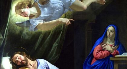 Elisabetta fu colmata di Spirito Santo ed esclamò a gran voce: «Benedetta tu fra le donne e benedetto il frutto del tuo grembo! A che cosa devo che la madre del mio Signore venga da me? Ecco, appena il tuo saluto è giunto ai miei orecchi, il bambino ha sussultato di gioia nel mio grembo. E beata colei che ha creduto nell’adempimento di ciò che il Signore le ha detto».